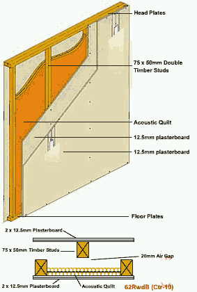 Separating Wall / Double Timber Stud / 52 RwdB+Ctr
