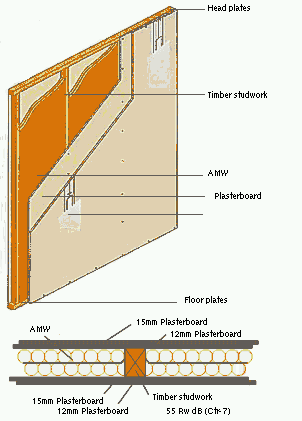 Components and Fixing Data: 1 x 12.5mm Acoustic Plasterboard (offset and screwed to)