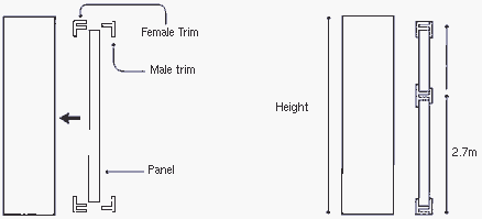 If paneling runs generally end in a corner of a room the neatest method of installation is shown above. Because no panel run has more than one cut edge at each end therefore all these are hidden in corners by the uncut panel. This eliminates the need for any internal corner trims hence resulting in a neater finish.