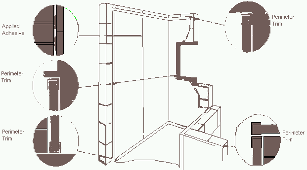 Mark the position of the panels on the wall. Apply an even brush of contact adhesive (approx. 100mm wide x 200mm long strips) on the wall to coincide with the perimeter edge on the rear of the panel at maximum of 900mm centers and allow to touch dry for about 15 minutes. Also apply an even brush coat of adhesive on the corresponding positions on the back of the panel so they coincide with the positions on the wall. Allow to touch dry (10-15 minutes). Carefully position the panel, fit one corner first, then aligh vertically and horizontally. Apply even, firm pressure along the lines of the adhesive positions. The panels must be carefully positioned as once contact is made they cannot be readjusted.